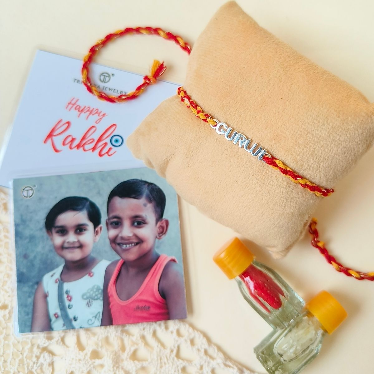 The Guru Ji Rakhi is a sacred emblem of knowledge, spiritual guidance, and heartfelt respect. Handcrafted in 92.5 Pure Silver and tied with a traditional red moli, this rakhi honors the revered Guru — the divine teacher who illuminates the path of truth and wisdom. Bless your brother with the light of wisdom, clarity, and unwavering guidance to navigate life’s journey with grace.