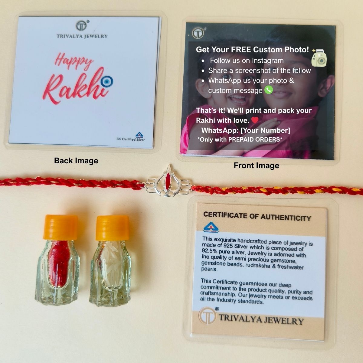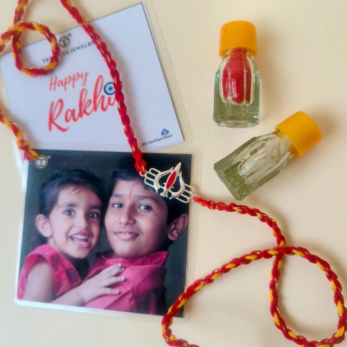 - Photograph: A laminated photograph of your choice, with 'Happy Rakhi' printed on the reverse side — available only with prepaid orders